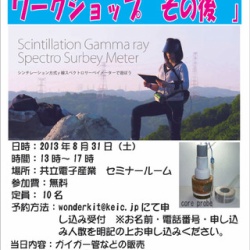 先日も紹介した「ガイガーカウンターワークショップ」 ついに明日開催となりました。 ポスターにも書かれておりますが当日は ・ガイガー管などガイガーカウンター周辺パーツの販売 ・計測技術の実習・各種ガイガーカウンターの展示実演開設 ・シンチレーション・γ線スペク ...