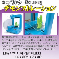 本日シリコンハウスにて3Dプリンターデモンストレーションを 行なっております。 3DCADなどで作って頂いたSTLデータお持ち頂ければ出力も致します。 ぜひぜひお越し下さい。 担当:ヨツモト ...